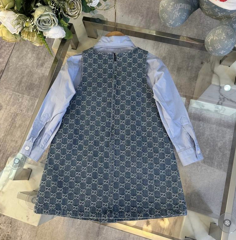 Elevate your little one's wardrobe with the Girls Designer Inspired Blouse and Dress Set. Featuring a stylish Gucci-inspired design in both blue and white options, this set is perfect for any occasion. Made with high-quality materials, these pieces will keep your child comfortable and looking fashionable.
