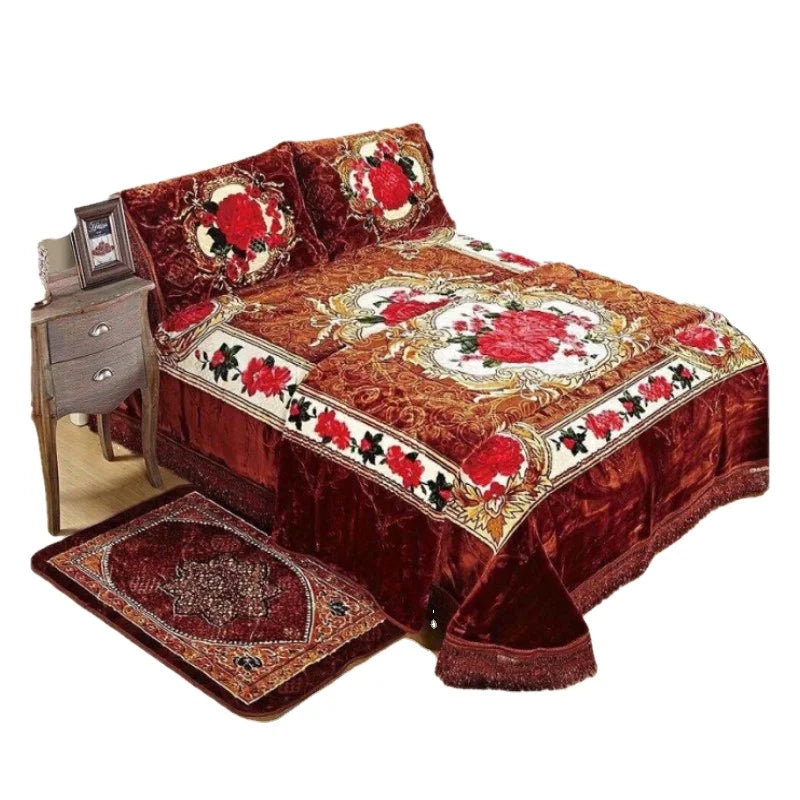 Introducing American Style Cashmere Eco-friendly Linen Thicken Raschel Embossed Flower 3D Printed Blanket - Exclusive Drop Style Code Set