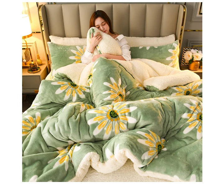 Introducing Korean Style Flower 3D Printed Sleep Aid Green Winter Thick Reversible Sherpa Comforter - Exclusive Drop Exclusive Heat